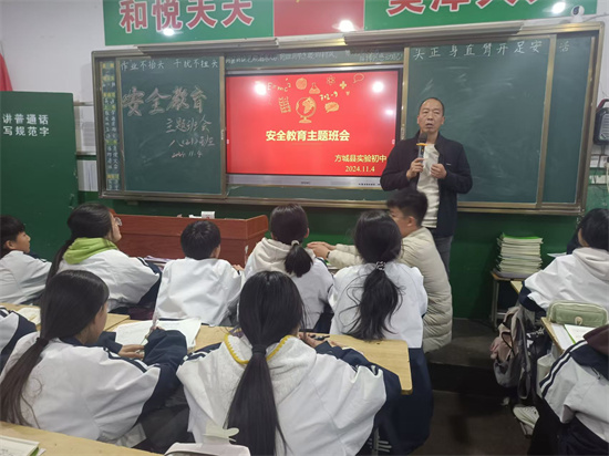方城县尝试初中教育集团西校区于11月4日下战书第四节课,进修了适用的平安学问和技术。并提示学生留意上下学途中的交通平安。并教授了自救和互救方式。服膺平安第一的准绳,通过案例和图片展现,班会由各班班从任掌管,