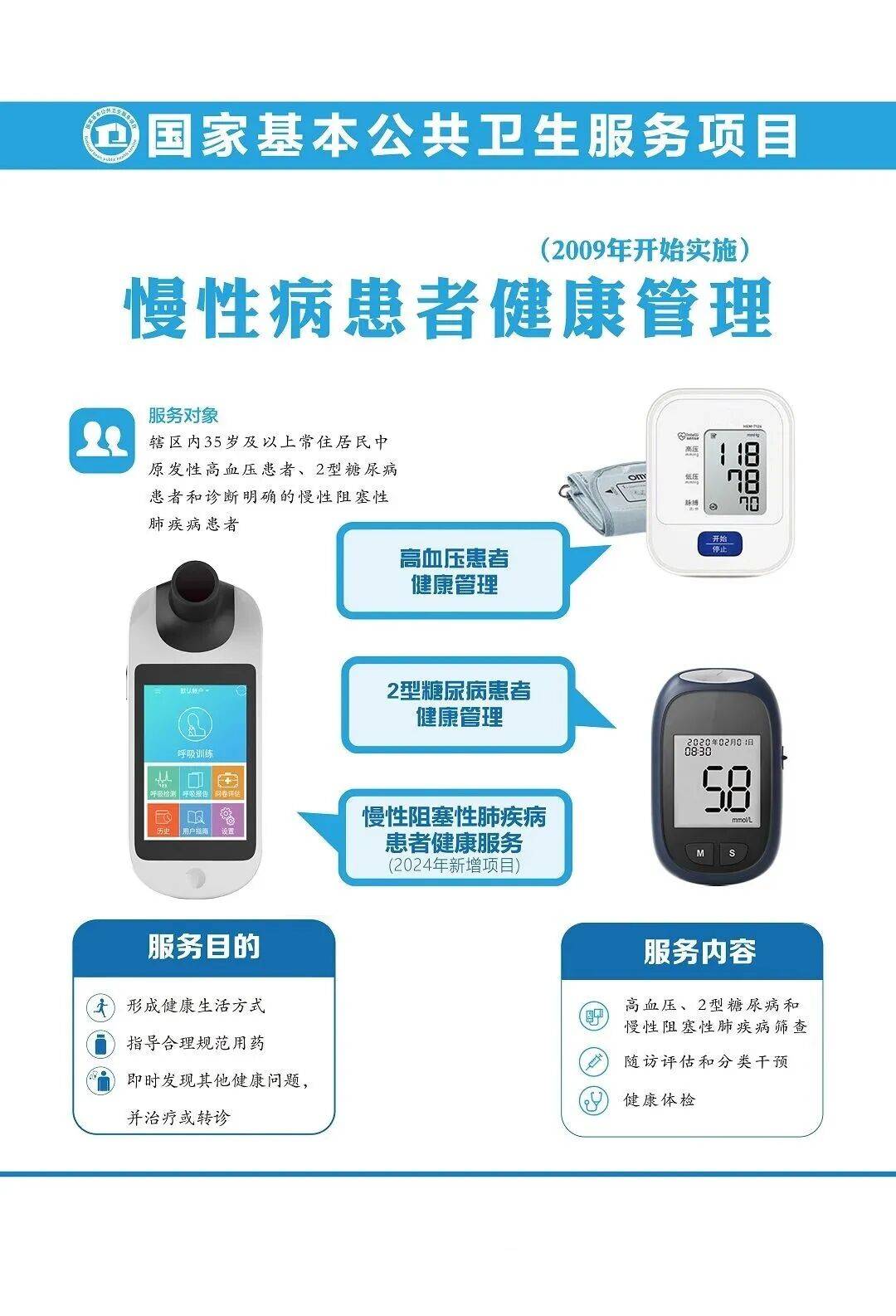 笼盖辖区内0-6岁儿童和其他沉点人群。包罗重生儿访视、婴长儿和学龄前儿童健康办理。对辖区内常住居平易近中诊断明白正在家栖身的严沉妨碍患者进行登记办理,流行症和突发公共卫生事务的处置。为辖区常住生齿(包罗栖身半年以上非户籍居平易近)成立同一、规范的健康档案。通过健康科普、国度根基公共卫生办事项目是我国针对当前城乡居平易近存正在的次要健康问题,